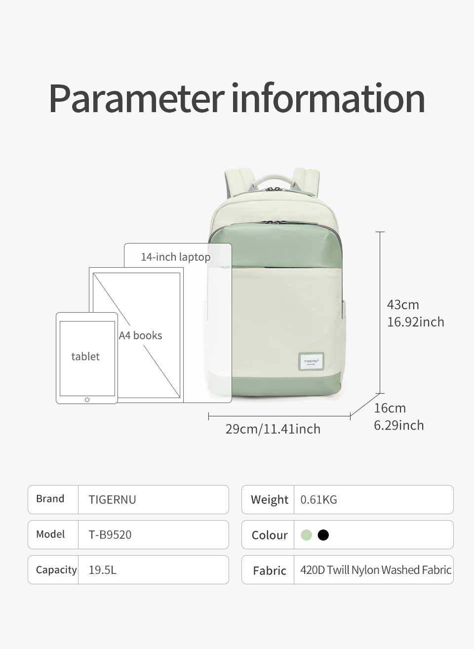 Tigernu T-B9520 High Quality Water Resistant Casual Light Weight 15.6 inch Backpack